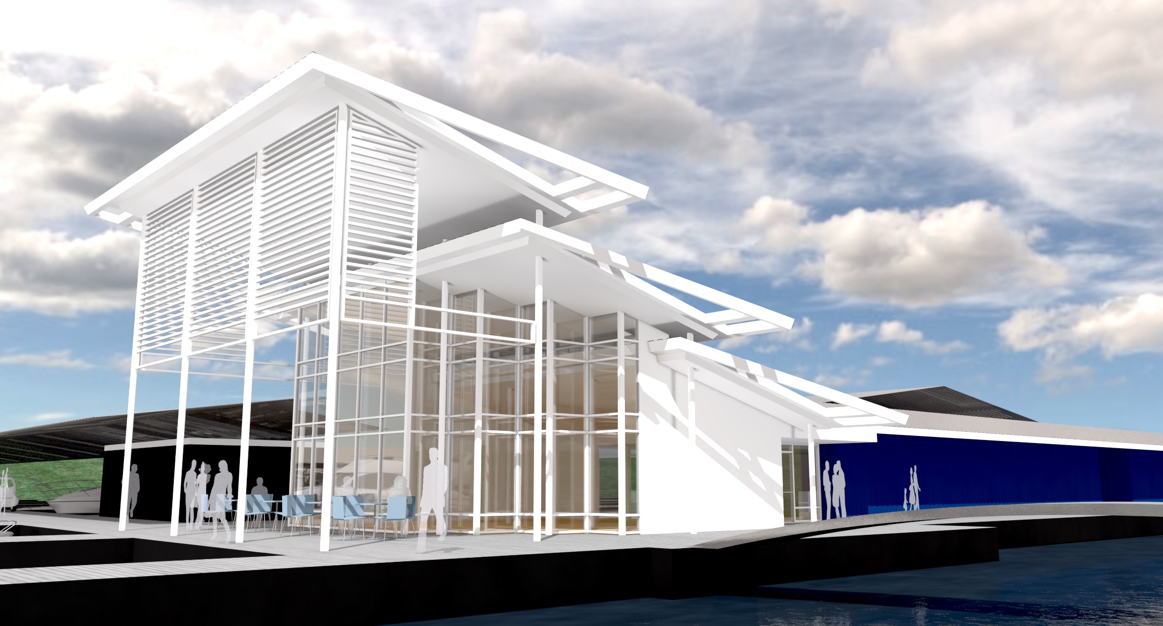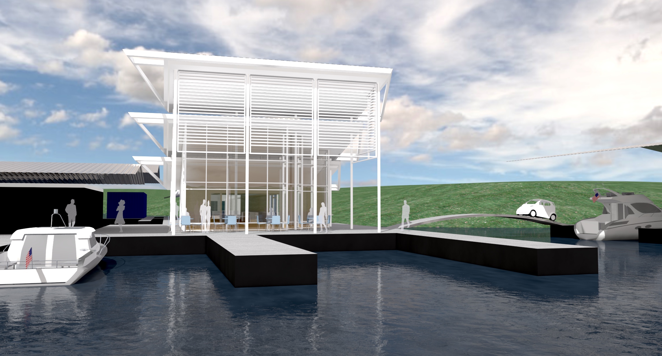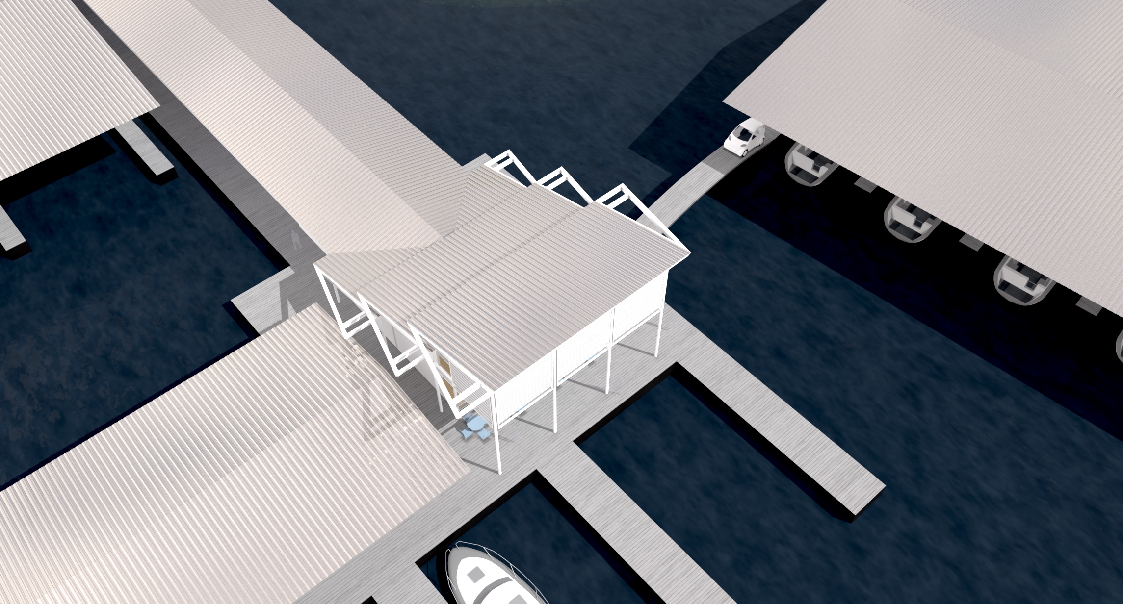 A retail store renovation and addition to Lacey’s Narrows Marina, Scheme B.